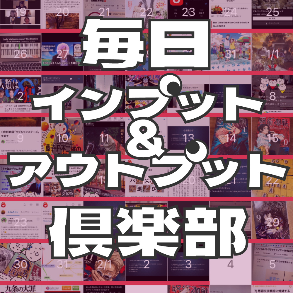 日々の学びや体験(=インプット)を、発信・共有(=アウトプット)しながら、自分をパワーアップしていく部活「毎日インプット&アウトプット倶楽部」。